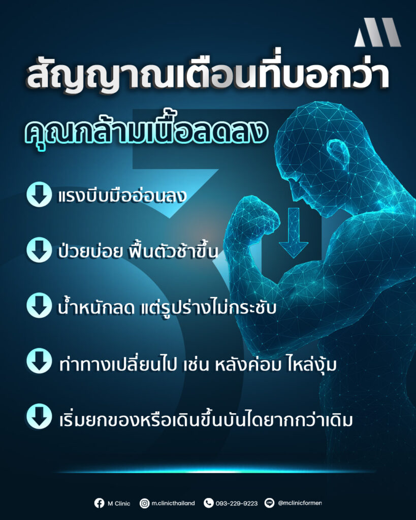 เมื่อคุณรู้สึกว่าเริ่มมีอาการเหล่านี้ เป็นสัญญาณว่าร่างกายกำลังมีกล้ามเนื้อที่ลดลง และควรเริ่มปรับพฤติกรรมในการใช้ชีวิตประจำวัน เช่น ออกกำลังกาย รับสารอาหารโปรตีนให้เพียงพอ และพักผ่อนให้เหมาะสม เพื่อช่วยชะลอการสูญเสียกล้ามเนื้อให้น้อยที่สุดเท่าที่จะเป็นไปได้