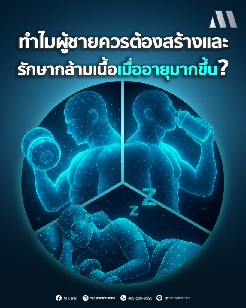 เมื่อพูดถึงการดูแลสุขภาพของผู้ชายเมื่ออายุมากขึ้น หลายคนอาจจะคิดไปที่เรื่องของน้ำหนัก ความดันหรือระดับน้ำตาลในเลือด แต่สิ่งหนึ่งที่มักถูกลืมคือเรื่องของ “กล้ามเนื้อ” ซึ่งมีความสำคัญไม่แพ้กัน โดยเฉพาะเมื่อผู้ชายมีอายุที่มากขึ้น กล้ามเนื้อไม่ได้มีเพื่อให้ดูรูปร่างดีเท่านั้น แต่มันยังเชื่อมกับระบบเผาผลาญ ฮอร์โมน สมรรถภาพ รวมถึงการใช้ชีวิตในประจำวันระยะยาวด้วย